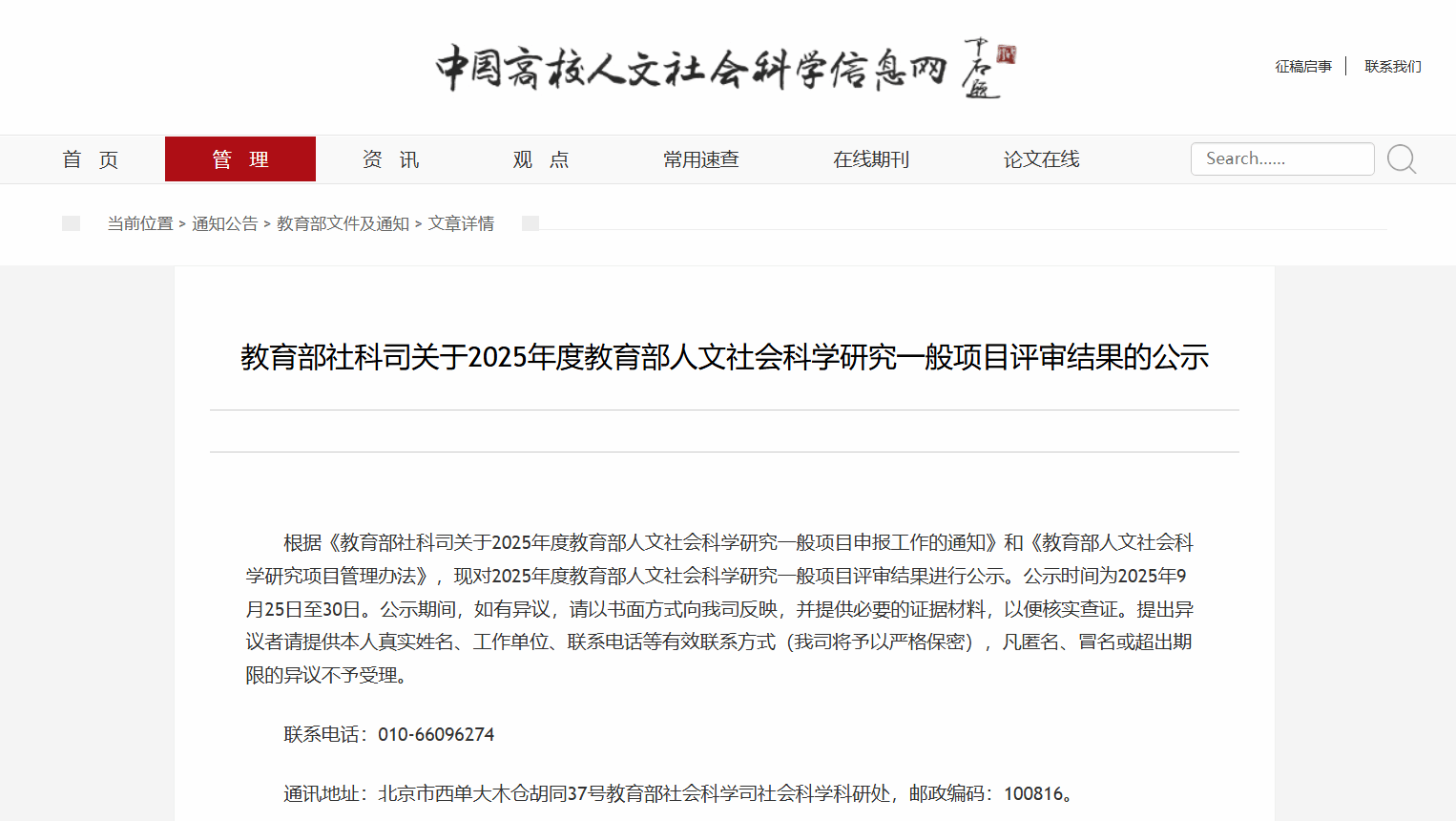 我院6名教师获批国家自然科学基金项目、教育部人文社科项目立项