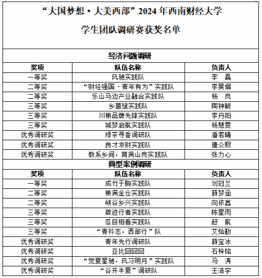 学生团队调研赛获奖名单如下: