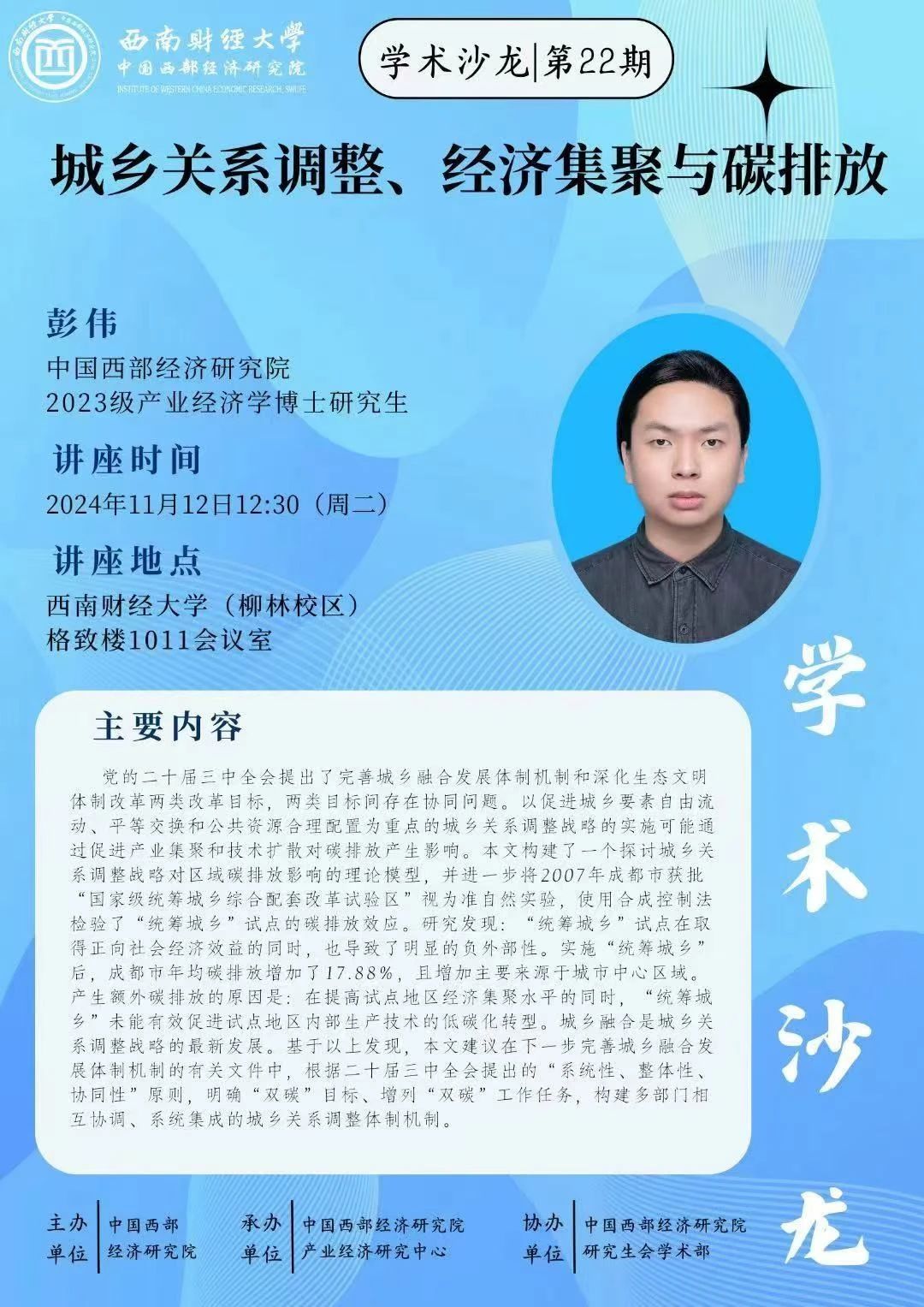 党的二十届三中全会提出了完善城乡融合发展体制机制和深化生态文明体制改革两类改革目标,两类目标间存在协同问题。以促进城乡要素自由流动、平等交换和公共资源合理配置为重点的城乡关系调整战略的实施可能通过促进产业集聚和技术扩散对碳排放产生影响。本文构建了一个探讨城乡关系调整战略对区域碳排放影响的理论模型,并进一步将2007年成都市获批“国家级统筹城乡综合配套改革试验区”视为准自然实验,使用合成控制法检验了“统筹城乡”试点的碳排放效应。研究发现:“统筹城乡”试点在取得正向社会经济效益的同时,也导致了明显的负外部性。实施“统筹城乡”后,成都市年均碳排放增加了17.88%,且增加主要来源于城市中心区域。产生额外碳排放的原因是:在提高试点地区经济集聚水平的同时,“统筹城乡”未能有效促进试点地区内部生产技术的低碳化转型。城乡融合是城乡关系调整战略的最新发展。基于以上发现,本文建议在下一步完善城乡融合发展体制机制的有关文件中,根据二十届三中全会提出的“系统性、整体性、协同性”原则,明确“双碳”目标、增列“双碳”工作任务,构建多部门相互协调、系统集成的城乡关系调整体制机制。
