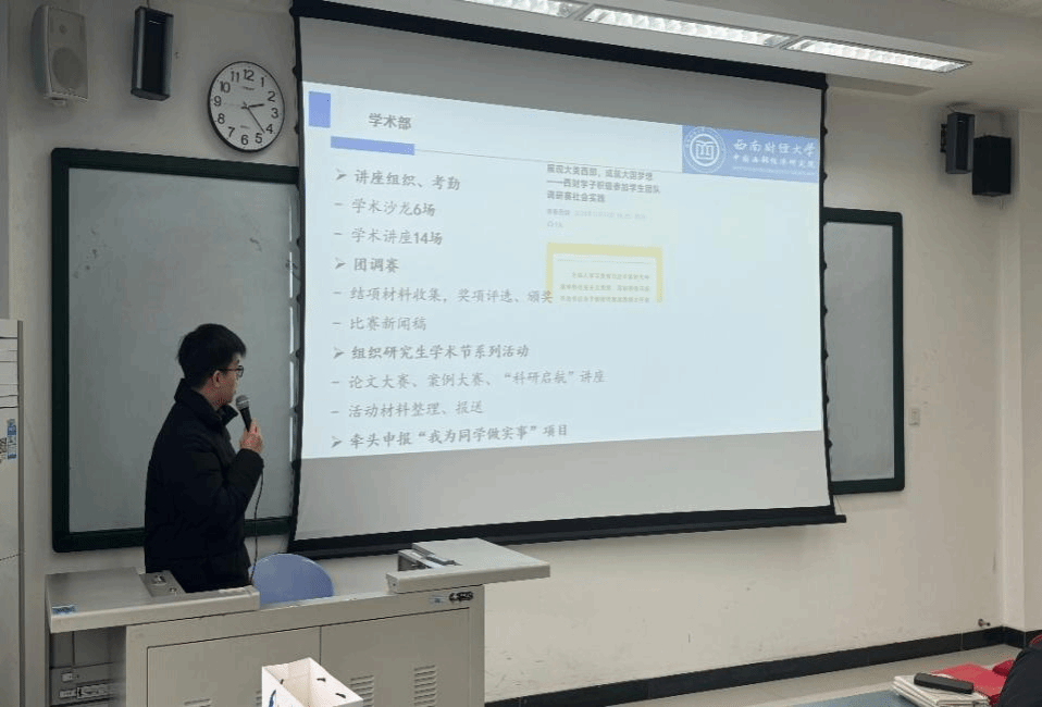 光华校区明德楼207教室召开。辅导员徐跃辉、研究生会主席团成员及各部门成员代表出席会议。会议由研究生会组织部部长陶威霖主持。